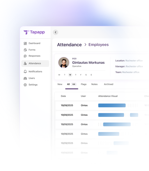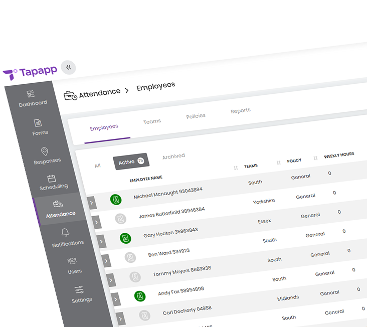 Tapapp’s Attendance Module is a smart, cloud-based solution built for UK businesses, especially those managing field teams across multiple sites.