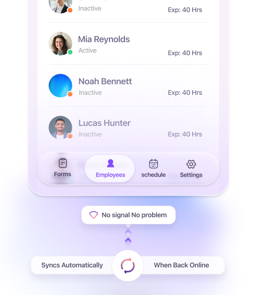 - Ideal for attendance tracking for cleaning companies, our offline sync feature works seamlessly without internet connection, syncing attendance data automatically once connectivity is restored, ensuring no data is ever lost