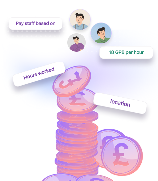 - Pay staff based on location and hours worked. You can set different rates and ensure proper wage calculation based on site or contract.