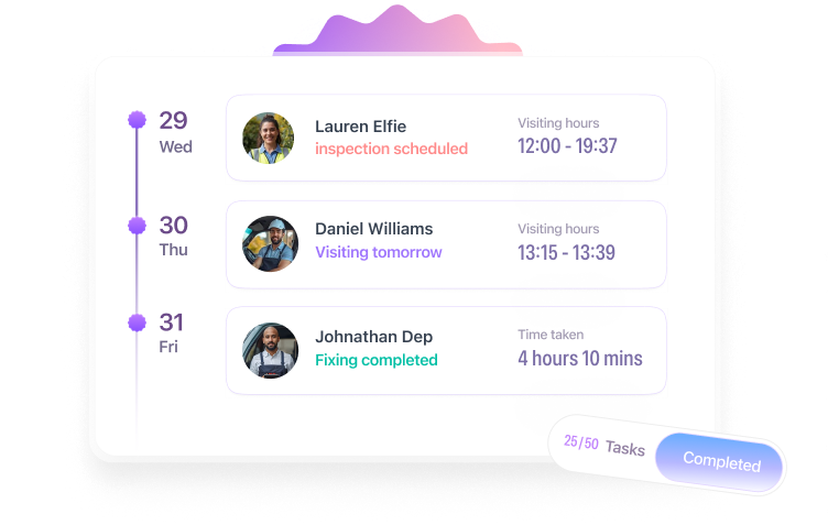 - Gain real-time field visibility with status, ETA, overruns, and photographic evidence in one view.
